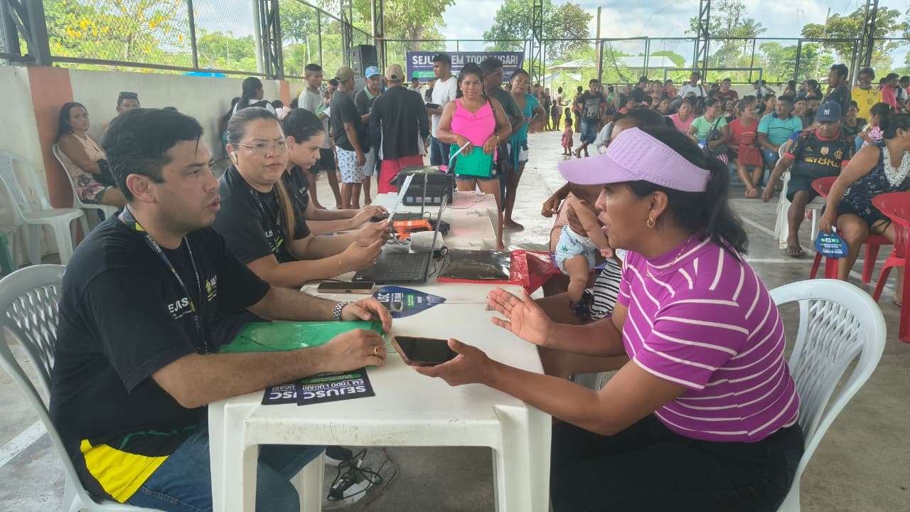 Com o propósito de aproximar serviços públicos e garantir direitos às comunidades tradicionais, a Secretaria de Justiça, Direitos Humanos e Cidadania (Sejusc) levou, na segunda-feira (03/11), uma série de serviços à Vila Canumã, em Borba (a 151 quilômetros de Manaus). A ação beneficiou 630 pessoas, todas pertencentes aos povos originários da região, promovendo acesso à cidadania e valorização cultural.