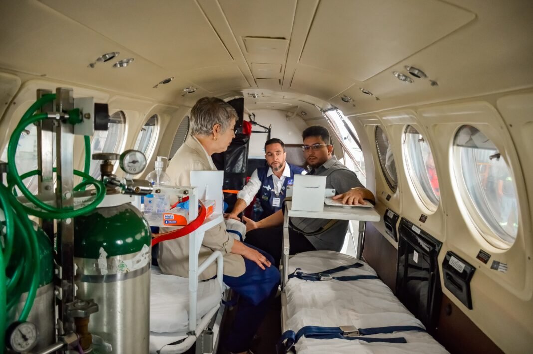 O serviço de transporte aeromédico do Governo do Amazonas é considerado o segundo maior do mundo em escala e recebeu destaque durante a visita. A iniciativa garante resgate e atendimento emergencial em um território com dimensões continentais, sendo fundamental para salvar vidas em regiões de difícil acesso.