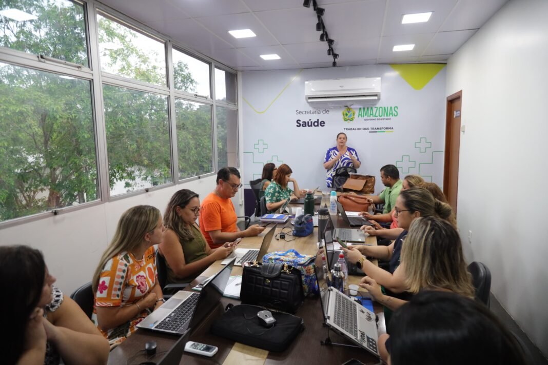 Após a visita in loco nas unidades de Saúde, à tarde, na sede SES-AM, a secretária Nayara Maksoud reuniu a equipe técnica para alinhamento e planejamento da gestão.
