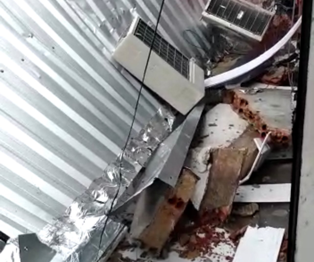 O Corpo de Bombeiros foi acionado por vomta das 13:30h deste domingo (6) para atender a uma ocorrência se desabamento de uma marquise, na frente de uma loja, na Avenida Mirra, zona leste de Manaus.